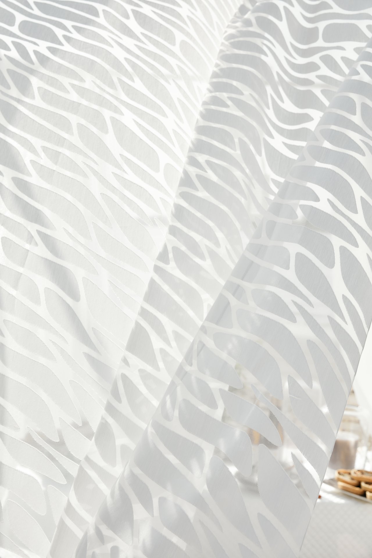 Es gibt auch wunderschöne Stoffe, sogenannte Ausbrenner, die nur teilweise transparent sind. Durch das Herstellungsverfahren haben diese Stoffe immer transparente Flächen und blickdichte Flächen. So entstehen faszinierende Muster, die den Stoff nicht nur praktisch, sondern auch zu einem Hingucker machen. Zugezogen werden die Muster durch die Sonne auch an die nächste Wand oder den Boden als Schatten geworfen und geben Ihren Raum eine spannende Atmosphäre.